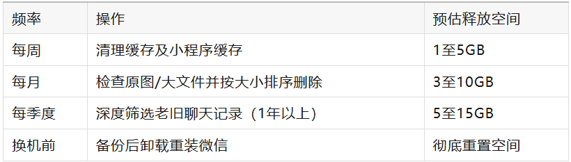若手机内存为128GB且微信常年大于50GB,建议升级256GB+存储。